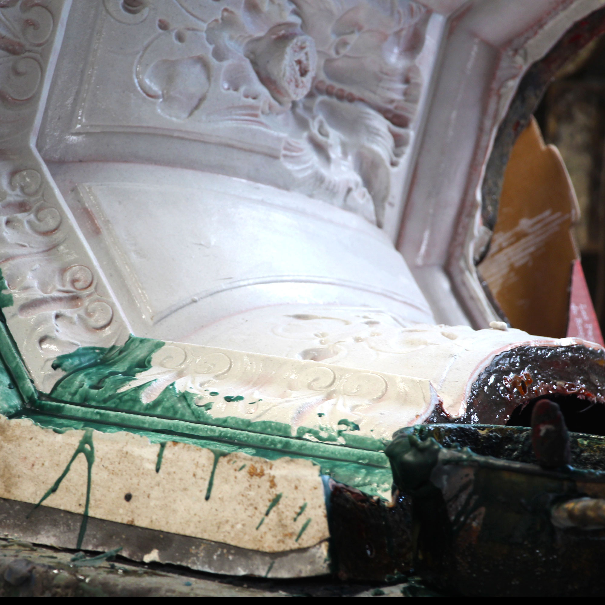 Le premier moule, fait de silicone, prend une empreinte étonnante fidèle de l'œuvre originale.
